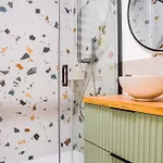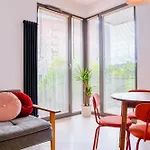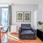 Dieses Apartment bietet seinen Gästen einen Balkon, eine Terrasse und eine Sitzecke, die mit einem Sofa und einem Schreibtisch und modernen Annehmlichkeiten wie einem Flachbildfernseher mit Satellitenkanälen ausgestattet sind. Die Unterkunft verfügt über 1 Schlafzimmer. Es gibt 1 Badezimmer mit einer getrennten Toilette und einer Dusche sowie einem Haartrockner und Badelaken.